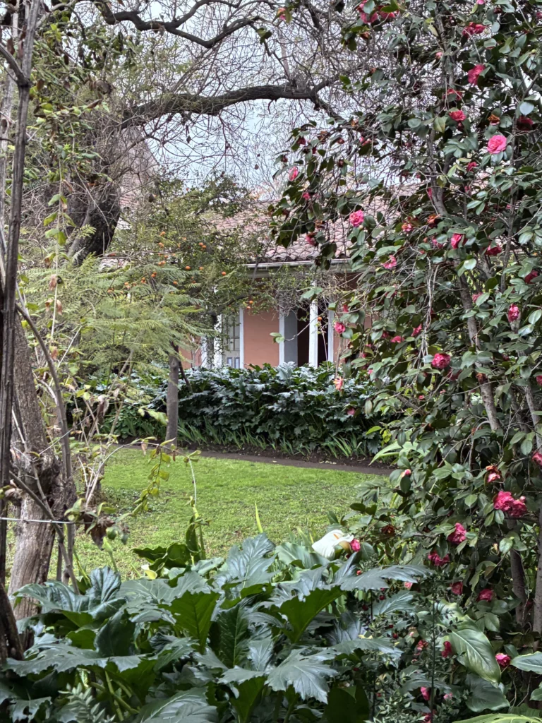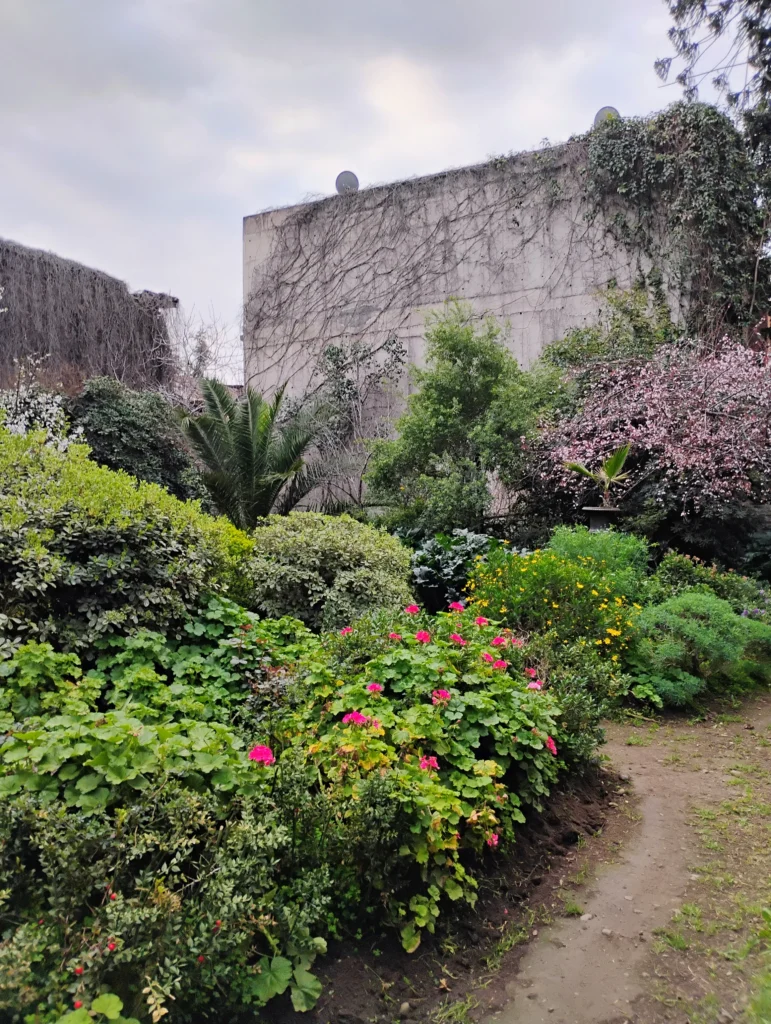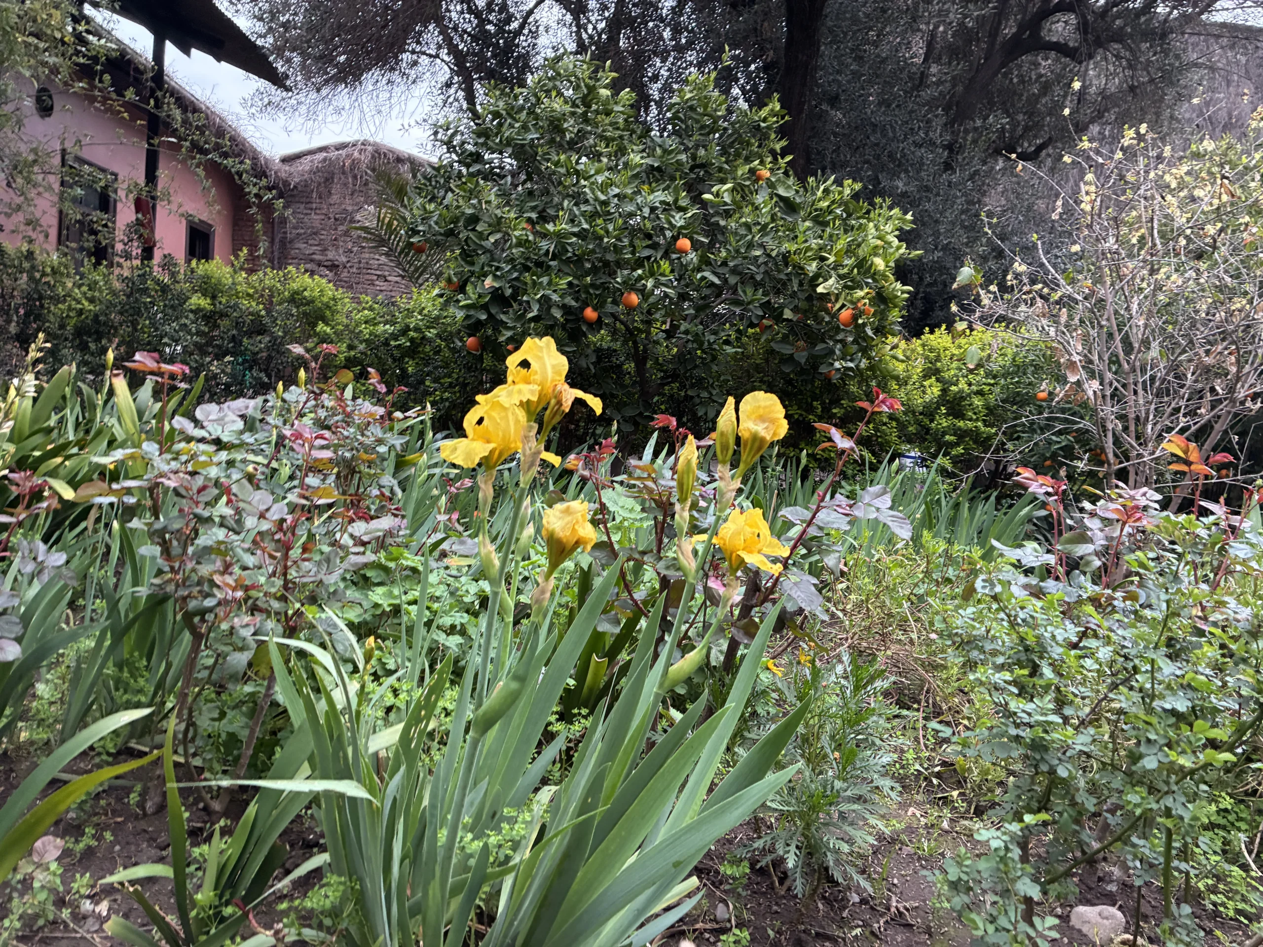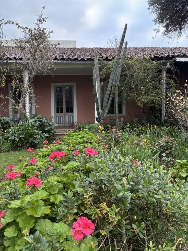 En el patio, en tanto, si bien la apariencia actual corresponde a una intervención paisajística de épocas posteriores, también se aprecia un muy bien cuidado jardín con palmeras, araucarias, flor de la pluma, árboles frutales y otras especies. Lo más increíble es que todavía quedan algunos ejemplares de la época en que Domeyko vivió allí, como unos naranjos y el jacarandá.