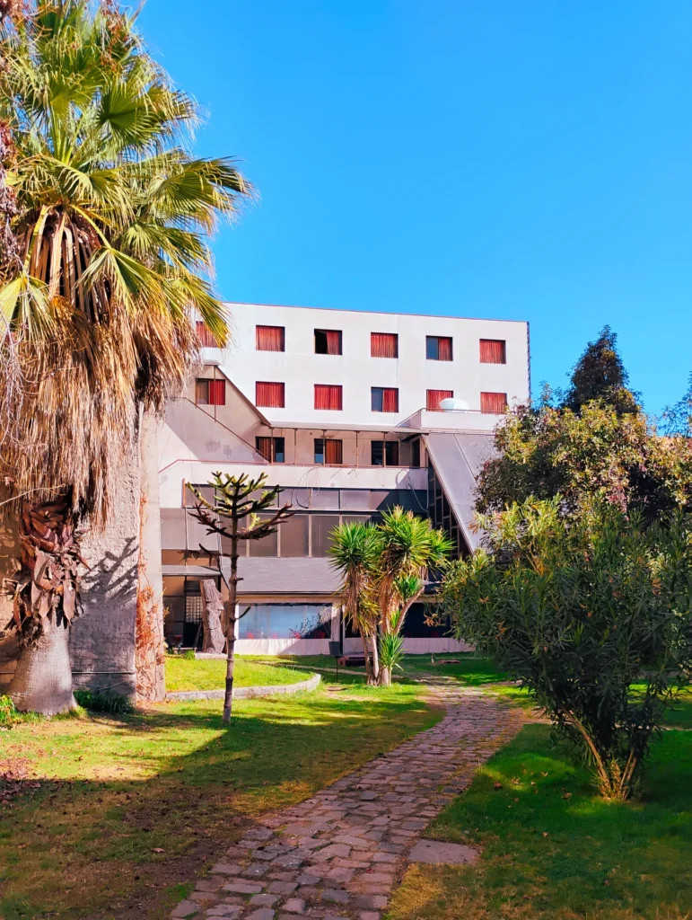 Por el jardín se accede a una capilla de forma octagonal que es un refugio silencioso, con muros marmolados y un alto mural con la representación de Pentecostés. Cerca de la capilla hay un sector de descanso con la figura de una virgen y, en un rincón, una huerta autogestionada por los residentes. Al fondo del jardín se encuentra un patio más íntimo donde se encuentra la araucaria más alta del recinto. Un último patio, de carácter reservado, cuenta con palmeras, plantas en macetas y… una guardiana: Zucolina, una amorosa perrita que es la regalona del centro y de los residentes.