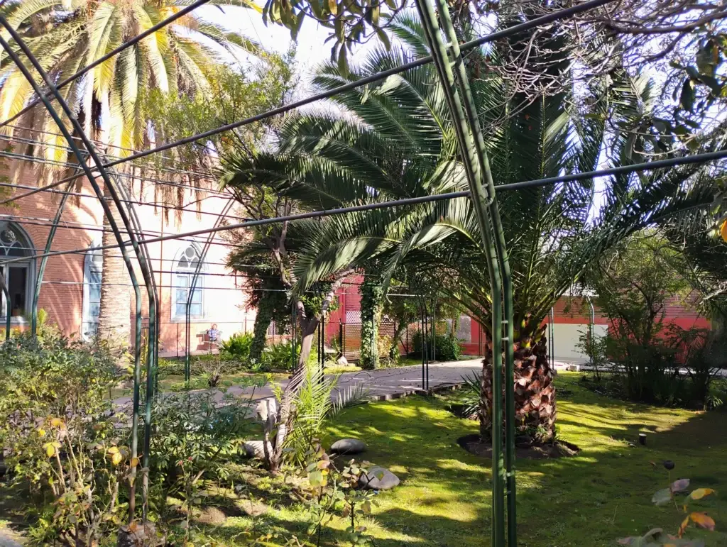 Su entorno impacta a quien lo visita: en la vereda norte se despliega una vegetación húmeda y frondosa, con hojas de gran tamaño que requieren abundante agua, conviviendo armónicamente con palmeras majestuosas, rosales en plena floración, cardenales y enredaderas que cambian de tono según la estación del año. En primavera, el verde brillante de las hojas asombra y llena de vida cada rincón.