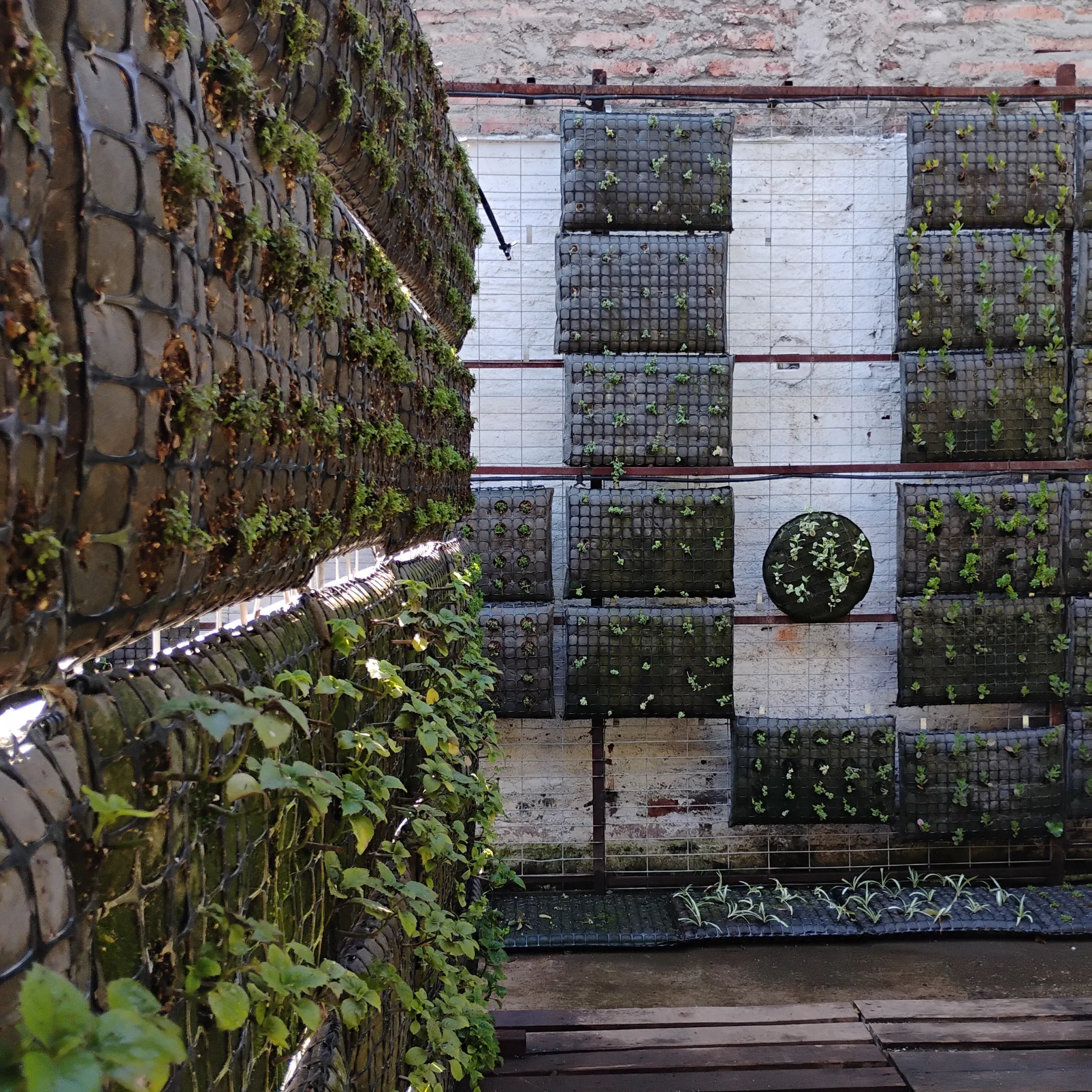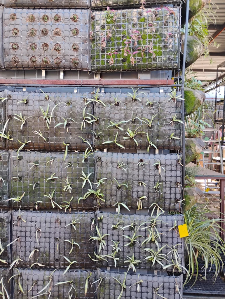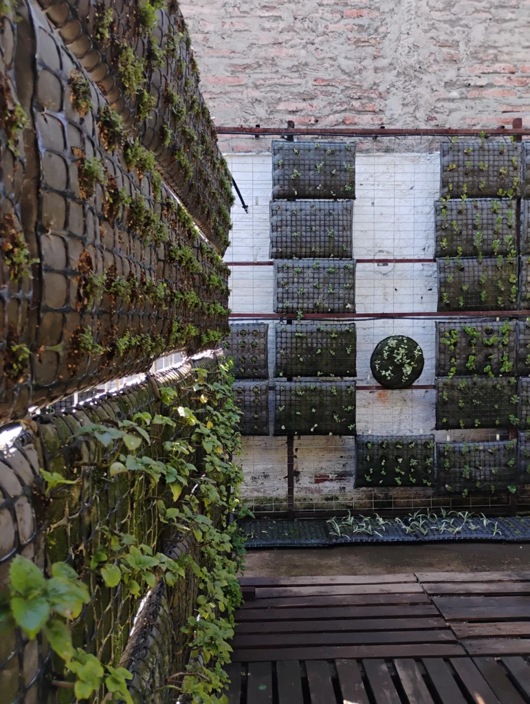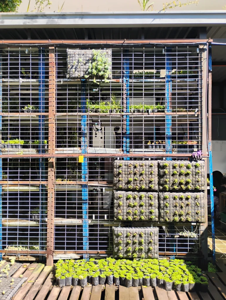 Jardín Modular funciona como un laboratorio vivo centrado en la creación de jardines verticales. Allí se prueban constantemente combinaciones vegetales, nuevas estructuras, sistemas de riego y técnicas de mantenimiento para este tipo de propuestas paisajísticas.