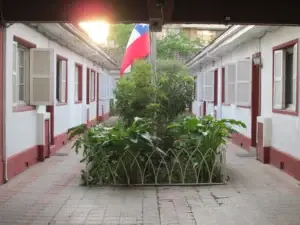 Un patio interior y un antejardín conforman los espacios abiertos visitables del edificio que alberga hoy al Museo de la Educación Gabriela Mistral, y que está declarado desde 1981 como Monumento Histórico.