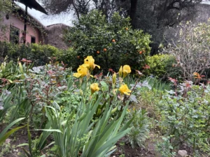 Como parte del complejo que conforman la iglesia colonial más antigua de Santiago y su claustro, que hoy alberga al museo con la mayor colección de arte virreinal de Chile, este jardín refleja el legado de la Orden Franciscana de cuidado y respeto por todas las criaturas vivientes.