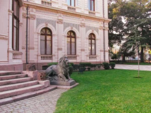 El Palacio Astoreca, ubicado en la calle Dieciocho, es una joya arquitectónica de principios del siglo XX que refleja el esplendor de la élite salitrera chilena. Su cuidado antejardín armoniza con la belleza de la elegante fachada de este edificio.