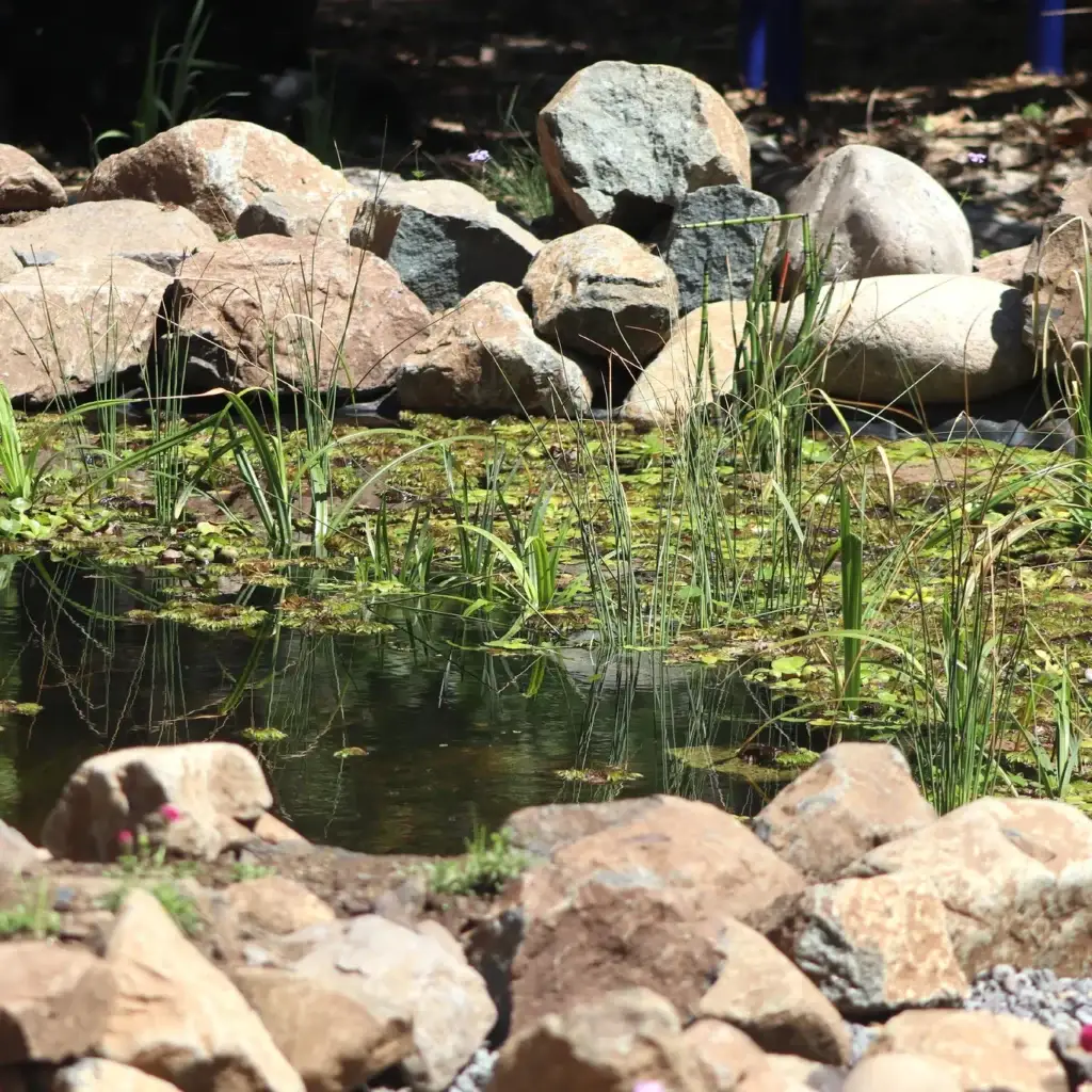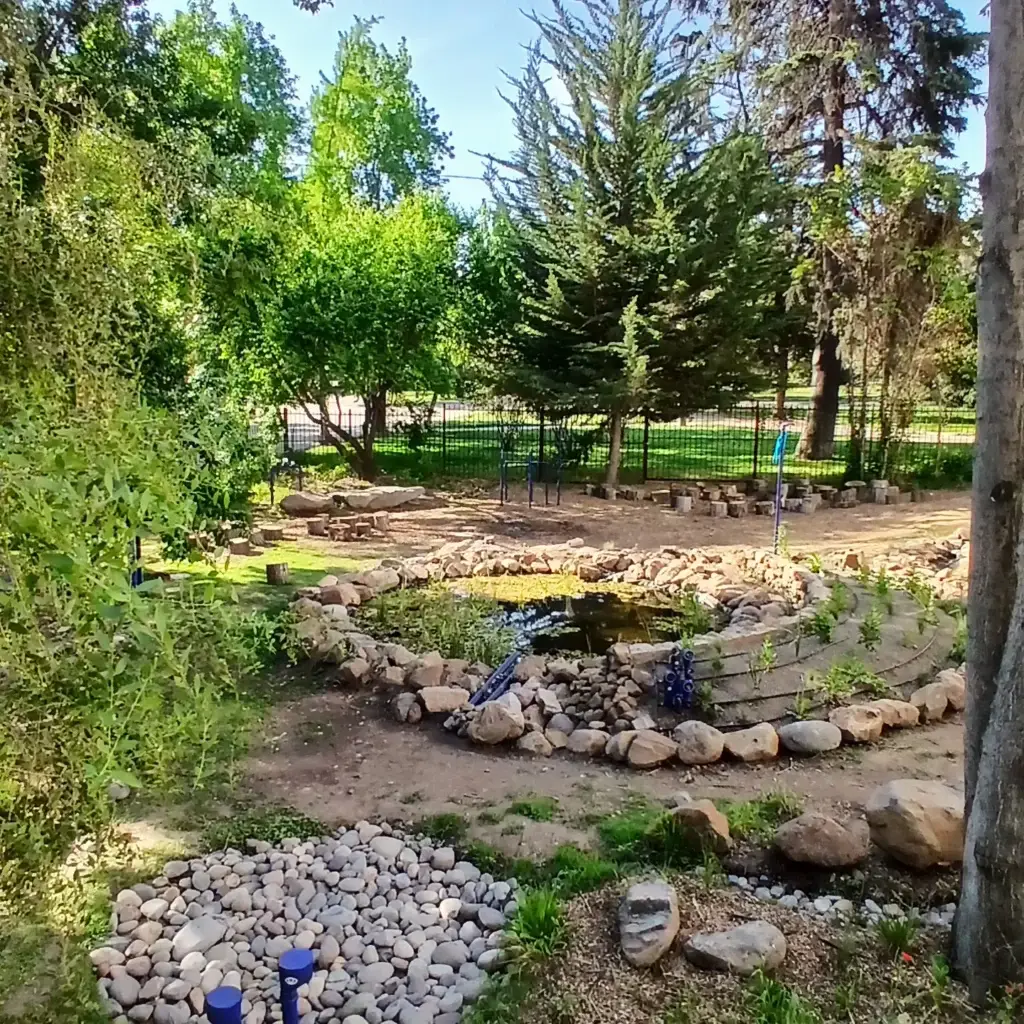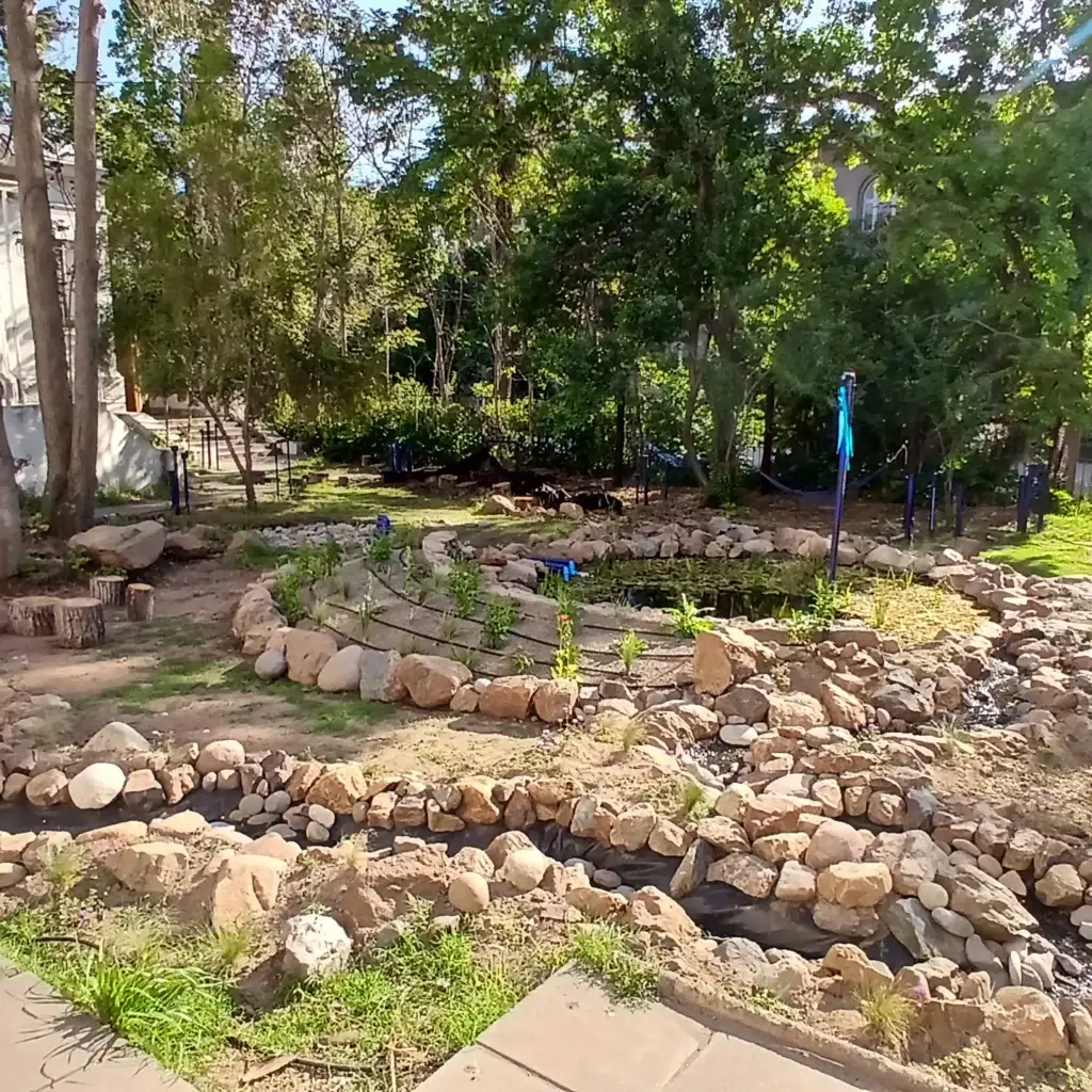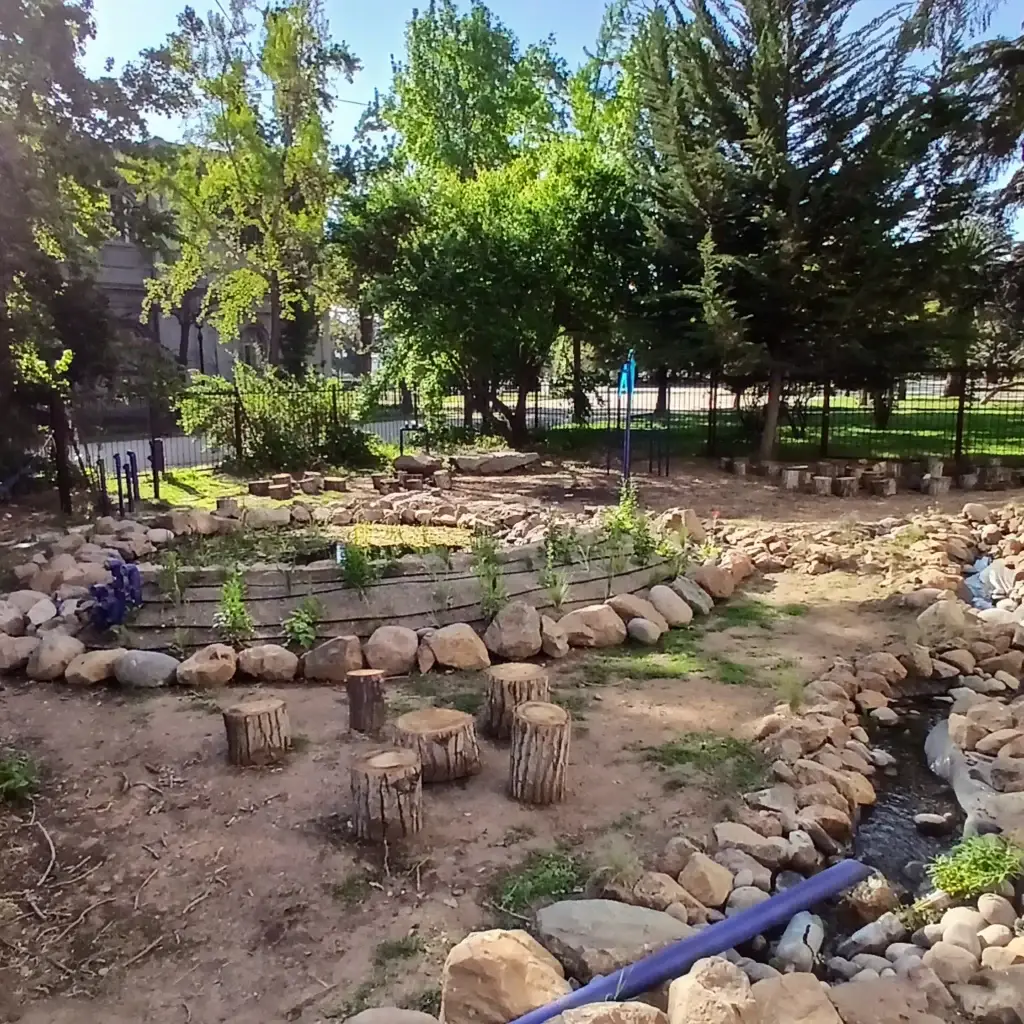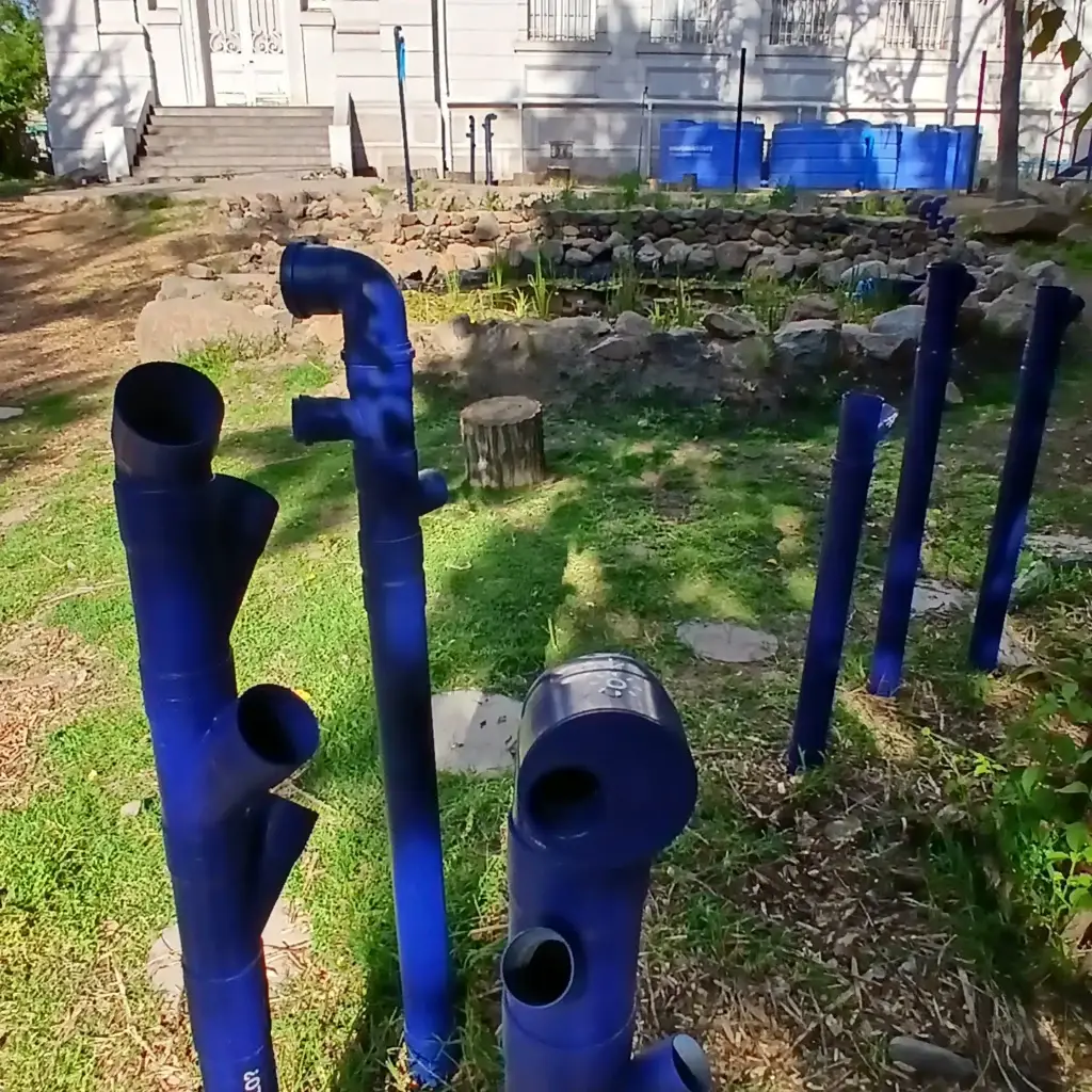 Este sistema busca “cosechar” la lluvia desde los techos del museo, junto con redistribuir los excedentes de agua en una zona de infiltración, para que éstos se reincorporen a los acuíferos subterráneos. El paisajismo se complementa con un recorrido mediado por museografía interactiva que invita a la exploración sensible de los elementos orgánicos y no orgánicos del jardín.