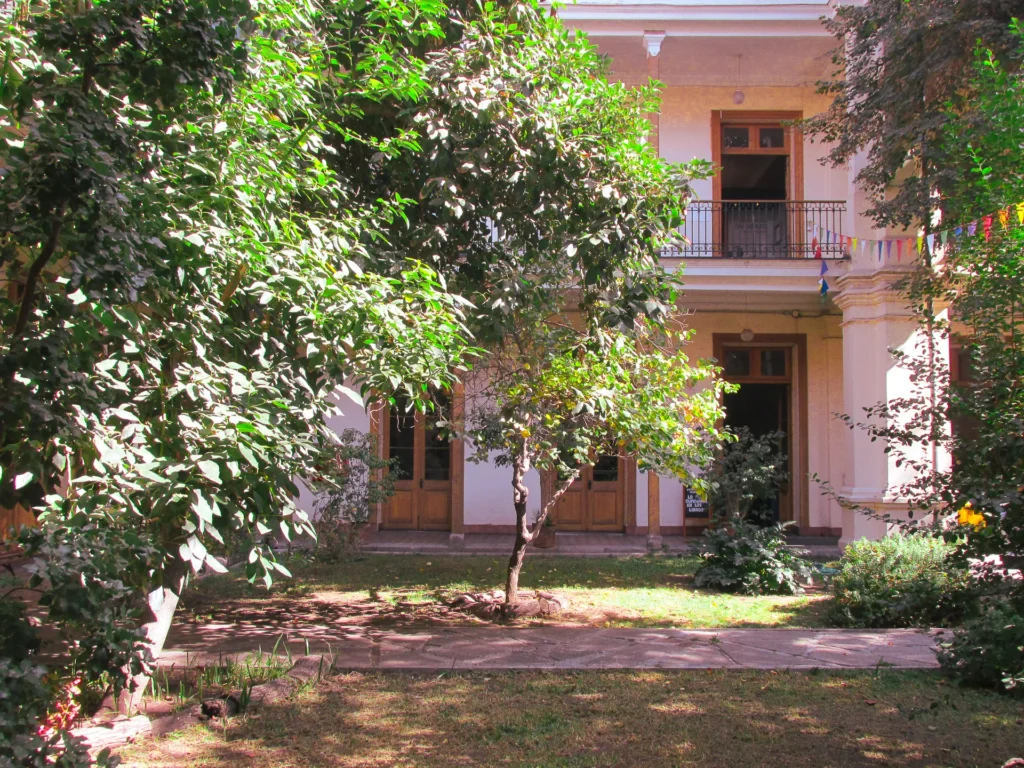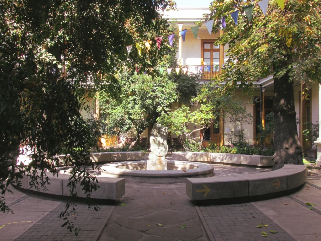 Un patio interior y un antejardín conforman los espacios abiertos visitables del edificio que alberga hoy al Museo de la Educación Gabriela Mistral, y que está declarado desde 1981 como Monumento Histórico.