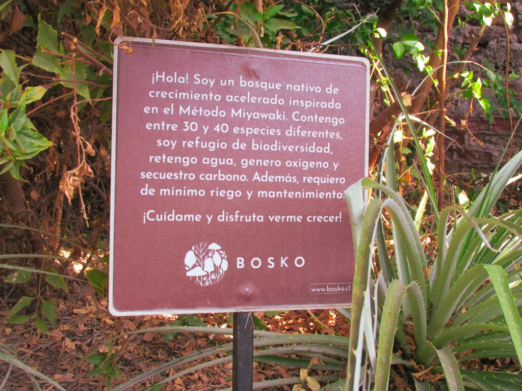 “Todo suelo sueña con ser bosque” es la premisa de Bosko (www.bosko.cl), quienes implementaron este proyecto vegetacional inspirados en la técnica de crecimiento acelerado del botánico Akira Miyawaki. Se trata de un método desarrollado alrededor de 1970 capaz de acelerar hasta diez veces el crecimiento de bosques nativos, plantando densamente varias plantas de diversas características. La competencia por alcanzar la luz y la colaboración que sucede bajo la tierra permiten crear en poco tiempo un espacio con tupida vegetación.
