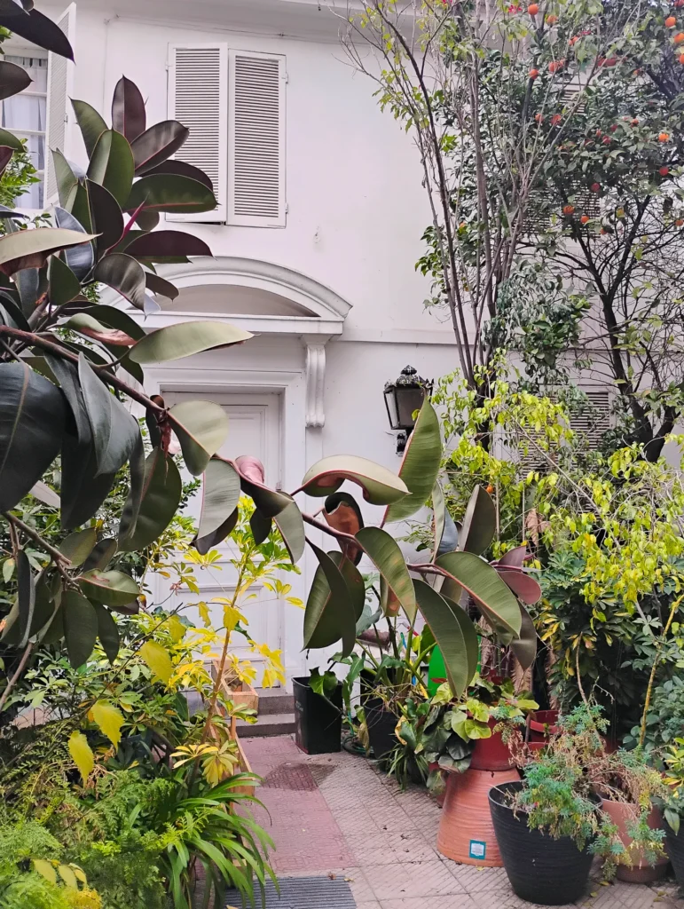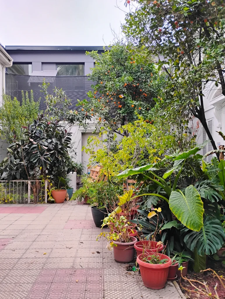 Cada uno de estos jardines tiene sus particularidades: uno destaca por su alta palmera por la cual trepa una enredadera perenne; otro llama la atención por su gran buganvilia y un conjunto de macetas con una diversidad de especies arbustivas y florales; el tercero es habitado por un níspero y un gomero; y el cuarto cuenta con un generoso naranjo. Esta “isla verde” del barrio es utilizada por el Servicio Agrícola y Ganadero (SAG) como sitio de medición de polinizadores.